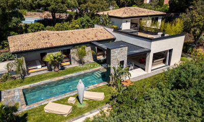 Con vistas bonitas y orientaciòn este esta casa (Villa) 249 m², con un terreno de 1220 m² comprende 8 habitaciones incluidos 5 dormitorios. Ella està dotada de un salón 61 m², de una cocina Ninguna, de una piscina, de una terraza y de un garaje. Calefacción : Climatización reversible individual.