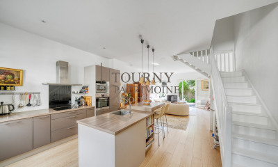 En un lugar tranquilo, esta casa 135 m², con un terreno de 193 m² comprende 5 habitaciones incluidos 4 dormitorios y 2 WC. Ella està dotada de un salón y de una cocina Equipada. Calefacción : Individual gas. Honorarios : 4.7.