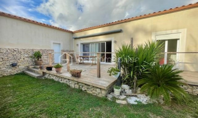 En un lugar tranquilo, con orientaciòn sur esta casa (Villa) 150 m², construìda en 2015, con un terreno de 760 m² comprende 6 habitaciones incluidos 4 dormitorios, 1 cuarto de baño y 2 WC. Ella està dotada de un salón, de una Zona de cocina, de una terraza, de 2 garajes y de 3 aparcamientos. Calefacción : Individual eléctrica.