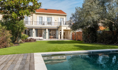Desde la entrada, el magnífico vestíbulo bañado de luz con sus ventanales conduce a un salón muy elegante con una noble biblioteca, un gran estudio con vistas a la piscina, una encantadora cocina abierta al exterior y un gran comedor.