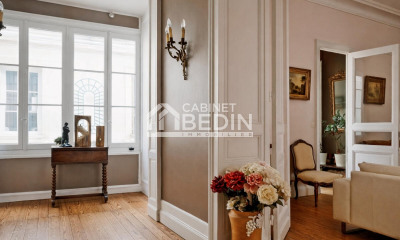 Cerca de la Place Pey Berland, escondida en una discreta calle peatonal, esta suntuosa casa adosada de tres plantas cuenta con una piscina con fondo móvil, un jardín arbolado de 150 m², un sótano de 95 m² y un garaje doble.