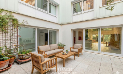 ¿Sueña con vivir en el campo sin salir de París? Con su exuberante jardín de 135 m² y su terraza orientada al sur de 33 m², esta casa de 263 m² de superficie, situada en una zona tranquila detrás de una discreta fachada, ofrece un estilo de vida poco común en París. La sala de recepción de 80 m² irradia cordialidad con su chimenea, suavidad con materiales naturales y el espíritu «campo en París» gracias a sus aberturas al jardín. Este exuberante jardín invita a la relajación y la convivencia: largas comidas bajo la glicinia, siestas a la sombra del olivo, cenas de verano... En la primera planta, un nivel dedicado a los padres: suite principal con cuarto de baño, amplio vestidor en tonos empolvados y acceso directo a la terraza, como un refugio suspendido. En la planta superior, un dormitorio de 15 m², un gran dormitorio de 30 m² (divisible) y un cuarto de baño con ducha y bañera. En el sótano: lavadero y amplia bodega. Hay una plaza de aparcamiento disponible en las inmediaciones. Al fondo del jardín, un taller o estudio independiente con cuarto de baño completa la propiedad, ideal para teletrabajar, como estudio para amigos, familiares o como espacio creativo. Una casa de estilo bohemio chic, pensada para aquellos que buscan tranquilidad, vegetación y elegancia sencilla en París. Todo ello a un paso de comercios, colegios y transportes, en una zona muy cotizada del distrito 15.