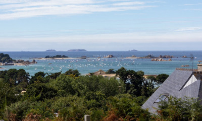 La maison principale comprend une grande véranda sur toute la longueur de la maison profitant d'une vue mer, un séjour avec cheminée de 48 m², un hall d'entrée de 24 m², une cuisine équipée, un salon de 28 m² en deux parties, wc avec lave-mains, une salle de bains. A l'étage, cinq chambres, une salle de bains, wc. En rez-de-jardin, une pièce, une chaufferie et un garage donnant accès au rez-de-chaussée d'une tour sur 3 niveaux avec accès indépendant. Au rez-de-chaussée, une pièce d'accueil, au premier étage, une chambre et sa salle d'eau-wc, au second étage, une pièce avec charpente apparente.