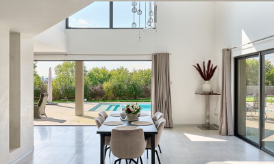 Rara vez una propiedad en el centro de la ciudad ofrece una relación tan directa con el río. La vista se abre a esta presencia cambiante y relajante, que acompaña las estaciones y da a la vida cotidiana una sensación de distancia. El terreno, llano y cerrado por muros, compone un exterior íntimo, al abrigo de miradas demasiado presentes, con una atmósfera casi confidencial a pesar de la centralidad de la dirección. Dos terrazas prolongan naturalmente la casa. Una invita a compartir comidas, la otra a momentos más tranquilos, en una relación sencilla con el aire, el follaje y el ritmo de la ciudad que se aleja.