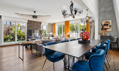 En un lugar tranquilo, con vistas bonitas y orientaciòn norte-sur-este-oeste este apartamento (Dúplex) 127 m², construìdo en 1990 dúplex, en un inmueble de 3 ???es comporta 5 habitaciones incluidos 3 dormitorios, 1 cuarto de baño y 2 WC. El està compuesto de un salón 35,56 m², de un comedor 12,34 m², de una cocina Americana equipada, de un balcón, de una terraza, de 2 garajes, de un sótano y de 3 aparcamientos. El està situado en el 1er piso con ascensor. Diverso : intercomunicador, código digital, parqué, televisión por cable.