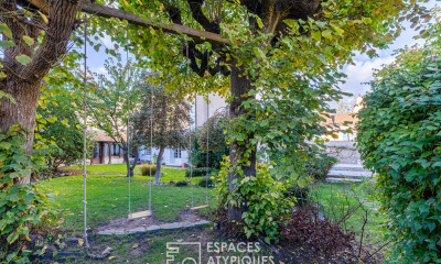 Situada en una calle tranquila, entre las orillas del Sena y las tiendas del centro de la ciudad, esta residencia es rica en historia ecléctica. Fue casa religiosa en el siglo XVIII, hospital militar, subprefectura bajo Napoleón, restaurante en 1990 antes de convertirse en una confortable casa familiar. Construido sobre un jardín cerrado de 867 m2 orientado al sur, al estilo de un jardín curativo con un pequeño arroyo y una piscina, el edificio de más de 350 m2 ofrece una planta en forma de L completamente orientada al jardín y sin pasar por alto para mayor discreción. óptimo. Un auténtico microcosmos vegetal en el centro de la ciudad. La entrada principal en la planta baja sirve a un guardarropa, un baño y un pasillo. Descubrimos a continuación, por un lado, un gran salón-comedor con funcional chimenea, cocina amueblada, gran lavadero y lavadero. Por otro lado, una bonita puerta con vidrieras revela un gran salón con grandes ventanales que ofrecen una vista excepcional del jardín. En el anexo, una oficina más íntima completa la planta baja y sirve como dormitorio de invitados. En el primer piso, un rellano conduce a un gran vestidor y al dormitorio principal con chimenea decorativa de mármol. Dos dormitorios contiguos y un baño con ducha y bañera completan esta planta. ¡En el segundo nivel, es el espacio infantil el que se expresa! Una enorme sala de juegos común de casi 40 m2 con entrepiso sirve a dos hermosos dormitorios y un baño. Finalmente, en el sótano hay una bodega triple que incluye la sala de calderas y una bodega, y al fondo del jardín, una dependencia y un garaje con acceso desde la calle. Suelos de parquet, vigas, baldosas, chimeneas antiguas, proximidad al centro de la ciudad y a los colegios son muchas ventajas que la convierten en una propiedad atípica. Tiendas, colegios y colegios privados a 3 minutos a pie Estación de tren SNCF a menos de 10 minutos a pie Eje A13 a 4 minutos en coche CLASE ENERGÉTICA: C - CLASE CLIMÁTICA: D