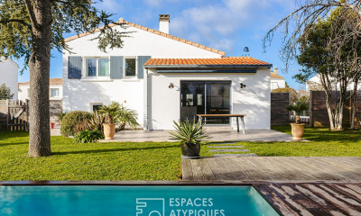 ESPACIOS ATÍPICOS EXCLUSIVOS. Ubicada a 10 minutos al norte de La Rochelle, en la popular localidad de Nieul-sur-Mer, cerca de comercios y colegios, esta reciente promoción contemporánea fue diseñada para una vida familiar y acogedora. Este arquetipo de hogar moderno se expresa aquí en torno a materiales de calidad, sutilmente seleccionados: hormigón pulido, metal, vidrio y madera. Cada detalle ha sido rigurosamente seleccionado por diseñadores de renombre o artesanos reconocidos, lo que convierte a esta casa en un refugio colorido y cálido. El salón se compone de una cocina central con electrodomésticos de alta gama que se extiende hasta el comedor. Los códigos de los lofts neoyorquinos son omnipresentes, en torno a la escalera metálica y los ladrillos auténticos de las paredes. Más abajo, la sala de estar, con suelo de parqué macizo, está totalmente domótica y promete agradables momentos de relajación. Este volumen, bañado de luz gracias a las omnipresentes ventanas y aberturas, se extiende hasta la suite principal, ubicada en la planta baja. Cuenta con un baño equipado con muebles italianos Moab. También hay un garaje convertido en un segundo dormitorio en una sola planta. Como nexo de unión entre las dos plantas, una pared verde aporta un toque de naturaleza al ambiente, que se aprecia aún más desde el primer dormitorio en la planta superior, que parece un estudio de artista y se abre a esta refrescante vegetación. El segundo dormitorio se distingue por sus volúmenes distribuidos en tres niveles. El primero se destina a la zona de descanso y al despacho, el segundo a una zona de juegos creativos y almacenamiento. El entrepiso completa este espacio de ingenioso diseño que encantará a grandes y pequeños. Un baño con toques de diseño completa las características únicas de la planta superior. En el exterior, una acogedora terraza orientada al sur permite disfrutar del entorno céntrico y a la vez tranquilo de este agradable barrio donde la vida es agradable, cerca del transporte público y de las carreteras, a pocos minutos del mar. Una casa excepcional y favorita para los amantes del diseño. CALIFICACIÓN ENERGÉTICA: B / CALIFICACIÓN CLIMÁTICA: A. Gasto energético anual medio estimado para uso estándar, establecido a partir de los precios de la energía de 2021: entre 780 y 1090 EUR. Reportaje fotográfico completo en nuestra web de Espaces Atypiques Charente-Maritime. Contacto: Astrid CAURIT 07.64.59.21.39 Agente comercial (EI) - RSAC La Rochelle n°793067059