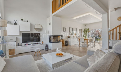 Déjese seducir por esta propiedad excepcional, una masía bellamente renovada, donde el encanto de lo antiguo se mezcla armoniosamente con el confort contemporáneo. Una invitación a vivir en armonía con la naturaleza, beneficiándose de comodidades modernas que redefinen el arte de vivir. El apartamento principal, con una generosa superficie de 200 m², se revela como un auténtico capullo familiar o un proyecto de alojamiento compartido con un ambiente cálido y acogedor. Con sus amplios volúmenes, techos altos y materiales nobles, cada estancia está bañada de luz y promete momentos inolvidables para compartir. La inteligente distribución resalta el espacio y permite una combinación de privacidad y convivencia. La superficie habitable de 85 m², abierta a una cocina de marca totalmente equipada y amueblada, se extiende a una sala de estar donde la chimenea aporta calidez y convivencia, creando un lugar perfecto para relajarse en invierno. En la planta superior encontrará tres dormitorios, incluida una espaciosa suite principal con vistas a la cordillera del Mont Blanc. En el exterior, la terraza de 150 m² le ofrece una vista impresionante del paisaje circundante, un lugar perfecto para disfrutar de momentos de relajación bajo el sol o para disfrutar de veladas con amigos alrededor del jacuzzi. El ambiente es sereno, propicio para la relajación y la contemplación. El amplio espacio de almacenamiento cubierto de 150 m², así como la dependencia independiente, ofrecen múltiples posibilidades de distribución, según sus necesidades o deseos. Esta propiedad está situada en el corazón de un entorno natural preservado, enclavada al pie del Jura, a solo 10 minutos de la frontera suiza. Un verdadero remanso de paz, es un refugio ideal para quienes buscan tranquilidad sin sacrificar la proximidad a los servicios esenciales. Los espacios verdes circundantes, la presencia relajante de los caballos y el paisaje bucólico invitan a soñar. Todo ello, estando cerca de colegios, comercios, campo de golf y servicios sanitarios, para ofrecer un entorno de vida excepcional. Esta rara propiedad, donde el confort moderno se combina perfectamente con la belleza natural de su entorno, encarna un arte de vivir único, entre serenidad y comodidad. Gasto energético medio anual estimado para un uso estándar, en base a los precios de la energía de 2022: entre 3.200 euros y 3.800 euros. La información sobre los riesgos a los que está expuesta esta propiedad está disponible en el sitio web de Géorisques para las zonas en cuestión: www.georisques.gouv.fr. Contacto: Nadia 06.68.91.95.58