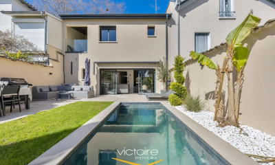 Ubicada en Villeurbanne, en un entorno urbano preservado y discreto, esta casa familiar ofrece una generosa superficie habitable de 204 m² y una excepcional calidad de vida en pleno centro de la ciudad. Tras su elegante fachada, la propiedad se organiza en torno a íntimos patios y una gran terraza de madera con spa, una auténtica extensión de las zonas de estar. El diseño general crea un estilo contemporáneo, concebido para combinar comodidad, amplitud y tranquilidad. La renovación destaca el equilibrio de las proporciones y la fluidez entre las diferentes estancias. La planta baja cuenta con un amplio y luminoso salón, abierto al exterior a través de amplios ventanales que extienden el espacio a la terraza y los patios. Las líneas limpias y la cuidada selección de materiales contribuyen a la cálida atmósfera de esta casa. La zona de noche se distribuye en varias plantas e incluye cinco dormitorios, dos de ellos suites, lo que la convierte en ideal para la vida familiar o para crear espacios dedicados al trabajo o al ocio. Las vistas interiores y las aberturas a los patios aportan abundante luz natural y crean una fluidez entre el interior y el exterior. La propiedad también se beneficia de su proximidad inmediata a comercios, colegios, conexiones de transporte y todos los servicios de Villeurbanne, lo que simplifica la vida diaria a la vez que mantiene un ambiente tranquilo. Esta casa, con sus generosas proporciones y espacios exteriores meticulosamente diseñados, representa una ubicación única en el mercado inmobiliario de Villeurbanne. La combinación de una arquitectura distintiva, patios íntimos y una zona de bienestar le confieren un carácter verdaderamente distintivo. Certificado de Eficiencia Energética (CEE): C - Eficiencia energética que garantiza un buen equilibrio entre confort y consumo controlado. El coste medio de la energía oscila entre 2.060 EUR y 2.840 EUR. Contacto: Emmanuel - +33 6 67 58 74 89