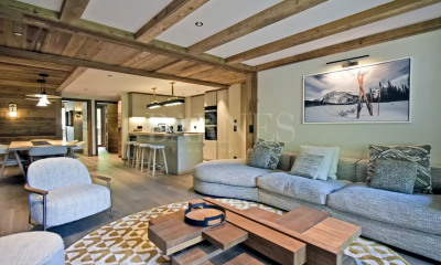 Ce duplex de 120 m², situé dans le quartier du Plateau à Méribel, bénéficie d'une terrasse sud d'environ 50 m² avec vue panoramique. Il comprend une chambre parentale avec salle de bains, un dortoir avec lits superposés et salle d'eau, deux chambres doubles avec salle de bains partagée, une cuisine ouverte sur la salle à manger, un grand salon cathédrale avec cheminée, un balcon exposé sud, un ski room privatif et un parking extérieur. Aménagement intérieur : Étage principal : Suite parentale double, dortoir en suite (2 couchages), salon avec cheminée, cuisine/salle à manger, terrasse exposée sud. Étage supérieur : Deux chambres doubles, salle de bain indépendante, toilettes séparées, petit espace détente. Services inclus : accueil, linge fourni, chaussons, produits d'accueil, ménage inclus, conciergerie dédiée. Principaux avantages : salon spacieux, bonne exposition, agencement confortable. Méribel 3 Vallées Sotheby's International Realty, spécialiste de la location d'appartements de luxe à Méribel.