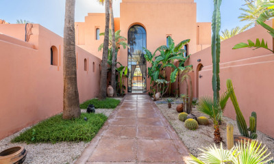 Cette très belle propriété de 1200 m² est située sur un domaine golfique à quelques minutes du centre de Marrakech. Maison de style moderne avec double séjour, 6 suites et un bar. Idéale pour les séjours entre amis, elle vous permettra de profiter d'un home cinéma, d'une discothèque, d'un superbe spa avec hammam et sauna. Son terrain de 5000 m², quant à lui, est agrémenté d'une piscine chauffée et de deux jacuzzis. Également équipée d'un ascenseur. A partir 2125 €/ nuit