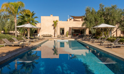 Cette propriété de 800 m² édifiée sur un parc de 1300 m² est idéalement située sur un domaine golfique. Grand double séjour avec cheminée centrale, suites spacieuses, hammam et salle de massage ; 8 chambres, 7 sont réparties entre le rez-de-chaussée et le premier étage, et la 8ème est en entresol, avec une lumière naturelle. Piscine chauffée. Décoration raffinée. 16 couchages possibles. A partir de 2125 € / nuit.