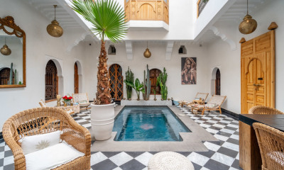 Cette sublime villa moderne, décorée avec élégance, est située à quelques minutes des principaux golfs. Les 6 chambres s'articulent autour d'un patio central. Belle pièce de vie avec cheminée donnant sur le jardin, salon TV. L'espace extérieur vous permettra également de profiter pleinement de cette magnifique propriété: sur un parc d'un hectare avec vue sur les montagnes de l'Atlas, vous profiterez d'une piscine chauffée de 25 m, d'un terrain de pétanque, d'un terrain de paddle et d'un très beau pool house avec salon et bar. Un grand spa avec hammam et salle de massage est également à disposition pour parfaire votre séjour. Disponible à partir de 2400 € par nuitée. Capacité de 12 couchages.