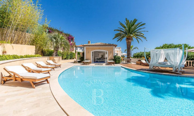 Situé dans le quartier très prisé de Super Cannes, cette villa possède une très belle vue mer panoramique et des prestations haut de gamme. Elle comprend un double séjour ouvrant sur terrasse vue mer, une cuisine américaine entièrement équipée, une salle à manger, une chambre de maitre avec salle de bain/douche et dressing en-suite, une chambre avec 2 lits simples et un lit pour bébé accompagnée de sa salle de douche et de son dressing en-suite, 3 chambres ouvrant sur le jardin avec salle de douche en-suite, une cave à vin, un sauna, un cinéma, un hammam avec douche, une salle de gym, et une salle de jeux pour enfants. La propriété possède également une maison d'amis indépendante comprenant un salon, une cuisine américaine et une chambre avec une salle de douche en-suite. L'extérieur est composé d'une piscine à débordement et d'un terrain de tennis.