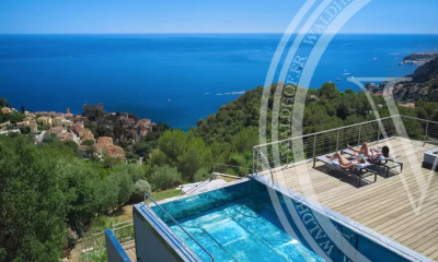 Cette villa contemporaine exceptionnelle de 320 m², nichée dans les collines prestigieuses de Roquebrune-Cap-Martin, offre un luxe méditerranéen. Perchée au-dessus du littoral et située sur un domaine privé de 2 600 m², cette élégante retraite offre des vues panoramiques sur la mer et un accès facile à Monaco, à seulement 5 minutes en voiture. Conçue par un architecte de renom, la villa présente des lignes modernes et épurées, des vitres allant du sol au plafond et des finitions haut de gamme, notamment un chauffage au sol en marbre, un ascenseur privé desservant chaque étage pour une commodité optimale et un système de sécurité ultramoderne. À l'intérieur, l'agencement ouvert passe en toute transparence d'un espace de vie baigné de soleil à une cuisine gastronomique de designer et à quatre chambres luxueuses avec salle de bains - chacune avec de nombreux rangements et des vues sereines. Vous pourrez ainsi profiter du soleil de la Riviera en toute intimité. Les fenêtres à triple vitrage, insonorisées et renforcées pour la sécurité garantissent la paix et la tranquillité, tandis que les volets électriques avec alarmes intégrées offrent un niveau supplémentaire de confort et de sécurité. Avec un garage spacieux pour trois voitures et un grand parking pour les invités, cette villa est le point de départ idéal pour une escapade estivale inoubliable sur la Côte d'Azur.