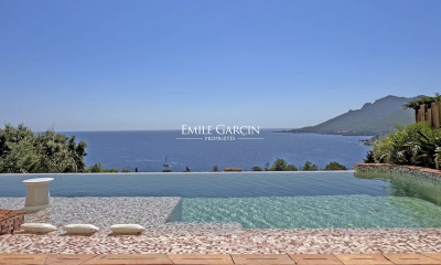 Maison moderne à Théoule-sur-Mer avec piscine à débordement et vues imprenables sur la mer et le Massif de l'Esterel Découvrez cette sublime maison moderne, entièrement rénovée avec des matériaux haut de gamme. Idéalement située à seulement 10 minutes en voiture du centre-ville de Théoule-sur-Mer et à 5 minutes des plages, cette propriété est parfaite pour vos vacances sur la Côte d'Azur. Profitez d'agréables moments au bord d'une piscine à débordement, offrant des vues panoramiques sur la mer Méditerranée et le majestueux Massif de l'Esterel. Cette maison spacieuse peut accueillir jusqu'à 10 personnes, avec 5 chambres élégamment décorées et 4 salles de bains modernes, garantissant confort et intimité pour tous les invités. Les deux salons lumineux et accueillants sont parfaits pour se détendre en famille ou entre amis. La cuisine entièrement équipée vous permettra de préparer de délicieux repas avec des produits locaux. À l'extérieur, la piscine à débordement invite à la baignade et à la détente, entourée de transats pour profiter du soleil. Pour des soirées estivales, un barbecue est à votre disposition, idéal pour des repas en plein air. De plus, un home cinéma vous promet des moments de divertissement inoubliables. Le parking privé peut accueillir jusqu'à 5 ou 6 voitures, offrant une grande commodité pour les groupes. Que vous soyez en quête de détente ou d'activités en plein air, cette propriété moderne et luxueuse est l'endroit idéal pour des vacances mémorables sur la Côte d'Azur. Réservez dès maintenant votre séjour dans cette magnifique maison à Théoule-sur-Mer et profitez d'un cadre de vie exceptionnel pour des vacances inoubliables.