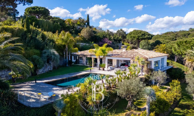 Au calme, proche des plages de Gigaro, sa position dominante offre un panorama exceptionnel sur la mer et les îles. D’une superficie de 390 m², cette propriété se compose d'une villa principale et de deux dépendances, offrant un total de 5 chambres et 5 salles de bain, pouvant accueillir jusqu’à 10 personnes. Elle bénéficie d'une vue panoramique sur la mer, ainsi que d'une piscine privative chauffée à débordement, d'un pool house, d'un jacuzzi sur le toit, de vastes terrasses et d'un garage. Une mini moke peut être à la disposition des hôtes pour sillonner le domaine de 10ha. Hélisurface dans le domaine. Un régisseur est présent dans le domaine. Service parahotelier, un bateau avec son skipper est disponible à la location. Ici tout n'est que luxe, calme et sérénité pour un séjour de rêve.