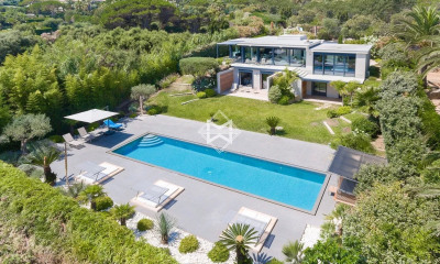 Située au coeur de la campagne de Ramatuelle à 3 km du centre ville de St Tropez et des plages de Pampelonne. Magnifique villa neuve de 250 m2 d'architecture moderne comprenant une vaste pièce à vivre comprenant un salon, salle à manger et cuisine ouverte équipée, 5 suites. Cette villa bénéficie d'un magnifique jardin paysager de 3147m2 et d'une grande piscine chauffée et de son pool house équipé. Climatisation, emplacement voitures, alarme. 83101 000360 EM