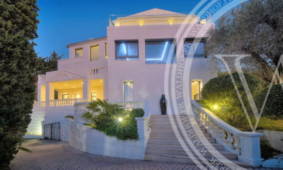 Proche du centre-ville de Cannes, superbe propriété composée d’une ancienne bastide et d’une maison d’invités au cœur d’un terrain de 2 500 m2. Entièrement rénovée et climatisée, la propriété offre des prestations haut de gamme et vous séduira par sa décoration soignée et chaleureuse. Vue mer panoramique sur toute la Baie de Cannes. VILLA PRINCIPALE : Entrée donnant sur la pièce de réception comprenant salon, salle à manger et cuisine ouverte, le tout s’ouvrant sur la terrasse jouissant d’une vue mer panoramique sur la baie de Cannes. Chambre (lit double) – salle de douches ensuite / WC A l’étage : Chambre de Maître s’ouvrant sur une grande terrasse - dressing – Salle de douches / hammam Rez-de-jardin : Chambre (lit double) – Salle de douches ensuite / WC Chambre d’enfants (2 lits superposés) – salle de bains / douche / WC Toilettes indépendantes Cave à vin Buanderie (lave-linge, sèche-linge) MAISON D’INVITES : Entrée s’ouvrant sur le salon et la cuisine A l’étage : Chambre (lit double) – Salle de bains / WC Salle douches /WC Chambre (lit double) s’ouvrant sur un balcon Piscine pouvant être chauffée (gaz) Sauna / douche / WC Cuisine d’été parfaitement équipée avec plaque de cuisson, four, lave-vaisselle, réfrigérateur Barbecue – coin repas