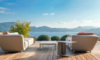 Référence Agence : PAL-705 DISPONIBILITÉS - SAISON - 2026 - Du 18 juillet au 15 août Villa entièrement climatisée denviron 320 m² bénéficiant dune vue panoramique sur la mer, édifiée sur un terrain de 3.500 m² environ. Elle se compose dune entrée, dun WC invités, dun salon salle à manger avec une vue sur la mer, donnant sur une vaste terrasse et sur la piscine, dune cuisine ouverte tout équipé avec vue mer également ; une arrière-cuisine/buanderie et un salon TV complète le niveau principal. La terrasse est aménagée avec salon extérieur, coin repas, barbecue électrique. Au niveau supérieur : une chambre « master » (lit en 180cm) bénéficiant de la vue mer et donnant sur une terrasse, avec sa salle de bains (douche et baignoire), WC séparés ; deux chambres (2 lits en 80cm pouvant être réunis) avec vue mer, leurs salles deau et WC séparés, donnant sur une terrasse commune ; une chambre double (lit en 160 cm) avec vue sur la mer, sa salle deau et WC séparés. Au niveau inférieur indépendant, une chambre double (lit en 160cm) ayant la vue sur la mer, avec sa salle deau et WC séparés, une chambre double (lit en 160cm) avec vue mer, une chambre dortoir (2 x 2lits superposés) avec vue mer, se partageant une salle deau et WC séparés. Piscine chauffée à débordement de 16 x 5m sécurisée par un filet américain, terrasse aménagée, terrain de pétanque.
