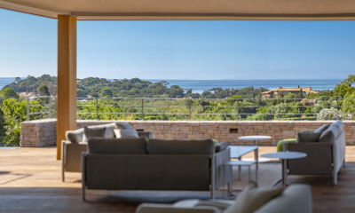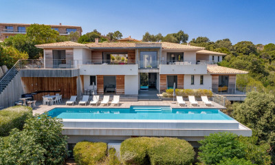 DISPONIBILITÉS - SAISON - 2026 - Du 27 juin au 1er août - Du 15 au 29 août Villa contemporaine de plain-pied entièrement climatisée située dans un petit domaine privé à la situation exceptionnelle, « pieds dans l’eau » sur la plage de Santa-Giulia avec portillon privatif sécurisé. La villa :entrée, vaste salon-séjour, cuisine entièrement équipée, 3 chambres, 3 bains, 2 WC indépendants, grande terrasse aménagée.