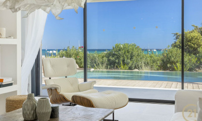 DISPONIBILITÉS - SAISON - 2026 - Du 4 avril au 13 juin - Du 27 juin au 25 juillet - Du 29 août au 5 septembre - Du 12 septembre au 31 octobre Situation exceptionnelle pour cette villa de 180 m² implantée sur un terrain de 5.000 m² " pieds dans l'eau " avec accès direct et piétonnier à une belle plage de sable. Entièrement rénovée et climatisée, elle propose: Niveau principal: Entrée avec toilettes d'invités. Séjour avec cheminée et TV s'ouvrant sur la terrasse et le jardin. Cuisine entièrement équipée. Cellier et buanderie. Demi-niveau supérieur: Une chambre s'ouvrant sur le jardin; salle d'eau avec vasque, douche et WC. Une chambre d' enfants. Niveau supérieur: Trois chambres avec TV et bains s'ouvrant sur une terrasse avec vue panoramique sur la mer, la piscine et le jardin. WC indépendant. Espace extérieur: Terrasses aménagées de 300 m² comprenant une cuisine d'été ombragée avec plancha électrique, coins salons. Terrain de pétanque. Piscine de 8 X 3m chauffée et sécurisée par une alarme.