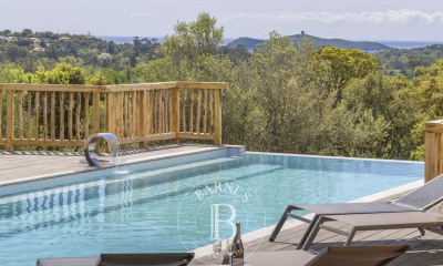 Référence Agence : ARA-701 DISPONIBILITÉS SAISON - 2026 - Du 4 avril au 31 octobre. Villa de caractère à louer – Saint-Cyprien Un bien rare, réunissant plus de 3 hectares en position dominante, une vue mer panoramique et une maison de caractère récemment rénovée d’environ 500 m². L’ensemble se situe à quelques minutes seulement de la plage du Cabanon Bleu et de son restaurant, ainsi que des plus belles baies de la région. Au niveau rez de chaussée : Hall d’entrée, salon avec vue mer, puis se décomposant en deux ailes : Aile droite avec un salon TV et une salle à manger ayant une vue mer, Aile gauche avec un autre salon avec vue mer, un WC invités, une cuisine équipée et un accès au niveau inférieur. Ce niveau donne sur une terrasse aménagée avec salle à manger et salons extérieurs, barbecue. Au niveau supérieur, l'espace nuit principal : Orientée vers la montagne, une suite dispose de sa salle d’eau avec WC séparés. Côté mer, une seconde suite propose une salle de bains avec WC, ainsi qu’une grande terrasse privative. Toujours avec vue mer, la troisième chambre bénéficie d’une salle d’eau et de WC séparés. Une quatrième suite, tournée vers la mer, accueille une salle d’eau ouverte. Avec vue sur la montagne, une autre suite offre un petit dressing et une salle d’eau. Enfin, un WC indépendant complète cet espace. Au niveau inférieur : Salon donnant sur une terrasse avec salon extérieur, Cuisine équipée, Vaste chambre double donnant sur le jardin, vue montagne, une salle de bains avec WC séparés, Dortoir avec deux lits double, sa salle d’eau avec WC, Coin fitness, Sauna, Salle avec rétroprojecteur, Buanderie. Les espaces extérieurs : Terrasses aménagées : salons et salles à manger d’été. Piscine chauffée de 12 x 7m sécurisée par une alarme, transats, Pool-house avec cuisine d’été, barbecue à gaz, Terrain de paddle, table de ping-pong et terrain de pétanque, Sur le toit, une terrasse avec un jacuzzi.