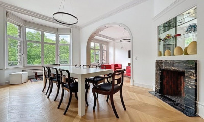 Quartier Molière : duplex en Rez-de jardin de 259 m² entièrement remis à neuf en 2024. Le Rez se compose d’un hall d’entrée avec toilettes invités, de deux salons et d'une cuisine hyper-équipée disposant d’un espace dinatoire, ayant un accès direct à la terrasse de ± 30 m² et au jardin de ± 2 ares. A l'étage, une suite parentale (± 28 m²) et salle bains ( wc et bidet) et dressing ou bureau (± 17 m²), une chambre (± 29 m²) dotée de placards, un espace bureau, une terrasse privative et une salle de bains avec wc. Au sous-sol, une buanderie et une salle de douche et wc. 1ère occupation, chaudière 2024, citerne d'eau avec filtrage pour les toilettes, châssis acoustiques. Isolation des sols. Nombreux rangements. Cheminée avec insert. Disponible immédiatement. Provision pour les charges: communes 50€ (contrat de jardinier possible). Excellent PEB: C-