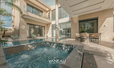 À seulement 28 minutes du centre-ville de Marrakech (19 km), sur la route de Fès vers Sidi Rahal, cette superbe villa de standing nichée dans un environnement paisible offre un cadre de vie idéal pour une résidence longue durée, alliant confort, espace et sérénité. Implantée sur un terrain de 3 700 m², cette propriété de 800 m² habitables séduit par son architecture élégante, ses prestations haut de gamme et ses volumes généreux. Caractéristiques principales : * Extérieurs : Grand jardin arboré et paysagé Piscine à débordement avec vue dégagée Salle à manger extérieure couverte Espace barbecue Environnement calme, entouré de maisons d’hôtes de charme * Intérieurs : Trois salons ouverts et lumineux Cheminée centrale Cuisine moderne et équipée Salle à manger intérieure élégante Salle de sport privative 6 suites, chacune avec salle de bain privative, rangements et climatisation individuelle * Confort & Équipements : Climatisation dans toutes les chambres Panneaux solaires pour une autonomie énergétique Puits privé pour les besoins domestiques et l’arrosage Connexion internet possible (fibre ou satellite) Stationnement sur la propriété * Services proposés : Gardien possible sur place Femme de ménage et cuisinière disponibles (à la charge du locataire) * À proximité : Épicerie et marché local à quelques minutes Accès rapide vers le centre-ville et les principaux axes routiers Une opportunité rare de vivre dans un écrin de nature aux portes de Marrakech, dans une villa alliant confort moderne, volumes spacieux et prestations haut de gamme. ?? Route de Fès – Sidi Rahal | Marrakech ?? Contactez-nous dès maintenant pour organiser une visite privée.