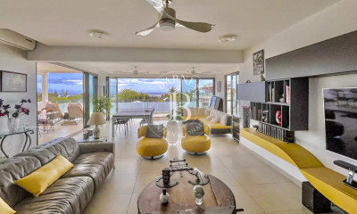 D'une surface de 199.2 m² et situé au troisième étage d'un complexe comerciale, ce magnifique penthouse offre une vue sur le lagon et la montagne de la Tourelle. Le penthouse dispose de 3 chambres dont 1 en suite, d'une cuisine américaine ouverte sur le séjour ainsi qu'une grande terrasse avec piscine. Développé dans le cadre du programme G+ 2, il bénéficiera d'un accès par ascenseur et d'options pratiques de parking souterrain, dont deux places pour chaque penthouse et appartement. La construction commencera en juillet 2022 et la livraison est prévue pour le début de 2024.