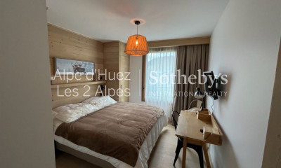 Dans le quartier recherché des Bergers à l'Alpe d'Huez, ce nouveau programme immobilier propose des chalets et appartements alliant modernité et tradition alpine. Idéalement situé au pied des pistes, il offre un accès skis aux pieds, rare privilège dans la station. L'Appartement Seira, d'une surface de 92 m², se compose d'un vaste séjour lumineux, d'une chambre double en suite, d'une seconde chambre double et d'un coin montagne avec lits superposés. Deux garages souterrains ainsi qu'un ski room complètent ses prestations. Livraison premier semestre 2026. *Visuel non contractuel
