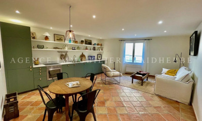 Cet appartement entièrement rénové saura vous séduire par de très beaux volumes et une hauteur sous plafond remarquable, ainsi que sa terrasse vue dégagée sur la nature. D'une superficie de 215 m2, il se compose d'un très grand espace de vie avec cheminée et cuisine américaine entièrement équipée, une chambre de maîtres avec salle de douche, grand dressing et une terrasse indépendante. Deux chambres complètent le niveau avec salle de douche et une terrasse supplémentaire. Bureau en mezzanine et de nombreux rangements. Une chambre au rez-de-chaussée peut être aménagée en studio. Grand garage, buanderie, cave à vin, terrasse orientation sud-ouest sans vis-à-vis, pas de travaux à prévoir. Les informations sur les risques auxquels ce bien est exposé sont disponibles sur le site Géorisques : ""