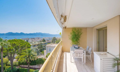 A vendre à Cannes - Appartement à rénové - situé au deuxième et dernier étage d'une résidence de standing et Idéalement situé à deux pas de la Croisette et des commerces. Cet appartement offre une superficie Carrez de 74 m² et se compose d'une entrée, d'une cuisine séparée, d'un salon avec terrasse, d'une deuxième terrasse, de deux chambres en suite et d'un vaste toit terrasse à aménager. L'ensemble de 3 terrasse présent une superficie de 138 m². Il ets vendu avec 2 garages dans la résidence voisine. Cet appartement à saisir est présenté par Côte d'Azur Sotheby's International Realty, votre expert de l'immobilier de luxe à Cannes.