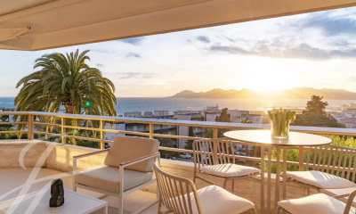 Magnifique appartement 4 pièces, d'une surface habitable de 100m² situé au 6ème étage d'une luxueuse résidence avec piscine intérieure et gardien. L'appartement, exposé sud/ouest, offre une vue panoramique sur Cannes et les îles de Lérins et se compose d'une grande pièce de vie avec cuisine ouverte et de trois chambres en suite ainsi qu'une terrasse d'une surface de 27m². Il inclut également un appartement d'invité au rez-de-chaussée de 48 m2, composé de 2 pièces, comprenant une pièce de vie avec cuisine ouverte et une chambre avec sa salle de bains attenante. Le bien dispose également d'une loggia offrant un aperçu mer. Une place de parking vient compléter cette offre. Bien vendu soumis au statut de la copropriété Les informations sur les risques auxquels ce bien est exposé sont disponibles sur le site Géorisques : www.georisques.gouv.fr