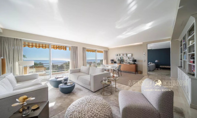Surplombant la mer et entouré d’un jardin botanique luxuriant, cet appartement de standing est situé dans une résidence de prestige à Cannes, sécurisée avec gardien 24h/24 et bénéficiant de deux piscines ainsi que de courts de tennis, dans un environnement calme et recherché. D’une superficie de 82,73 m² Loi Carrez, il dispose d’une terrasse plein Sud de 24,20 m² offrant une belle vue dégagée sur la mer et la végétation. Il se compose d’une entrée, d’un séjour s'ouvrant sur la terrasse, d’une cuisine équipée, d’une chambre orientée vers la végétation avec salle d’eau en marbre, d’une seconde chambre en suite avec salle d’eau privative, ainsi que d’un dégagement avec rangements. L’ensemble se distingue par une belle luminosité et un cadre de vie particulièrement serein au sein d’une résidence prisée, entre mer, nature et proximité du Palm Beach. Un garage fermé et une cave complètent le bien.
