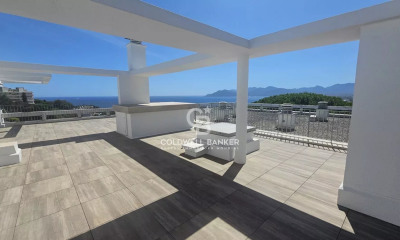 Situé au cœur d'une résidence de standing avec parc, piscine et court de tennis, ce penthouse d'exception bénéficie d'un cadre de vie privilégié, alliant calme absolu et proximité immédiate des plages de sable blanc et des commerces. Cet élégant appartement de 3 pièces séduit par ses volumes généreux et sa luminosité omniprésente. Le vaste séjour s'ouvre sur une cuisine moderne entièrement équipée, créant un espace convivial et raffiné. Deux chambres en suite, chacune dotée de sa salle d'eau, offrent confort et intimité. La magnifique terrasse de plain-pied de 110 m² constitue un véritable havre de paix, avec une vue spectaculaire sur la mer et les collines environnantes. Une cave en sous-sol et un emplacement de parking couvert complètent ce bien rare sur le marché. Ce penthouse d'exception vous est présenté par Côte d'Azur Sotheby's International Realty, votre référence en immobilier de prestige à Cannes.