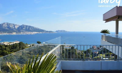 Exclusivité - À vendre dans le 7ème arrondissement de Marseille, résidence Les Alpilles, penthouse d'exception avec terrasse panoramique. Dans la très recherchée résidence des Alpilles, découvrez ce penthouse unique de 320 m², situé au dernier étage et bénéficiant d'une terrasse exceptionnelle de 300 m² offrant une vue à couper le souffle sur la mer, les îles, Notre-Dame de la Garde, la colline et la rade de Marseille jusqu'à la Côte Bleue. Entièrement rénové par un architecte, cet appartement rare conjugue élégance contemporaine et prestations haut de gamme. L'accès se fait par un palier privatif, garantissant intimité et exclusivité. Il se compose d'une vaste galerie d'entrée, d'un séjour lumineux aux volumes généreux, d'une salle à manger conviviale, d'une cuisine design sur mesure parfaitement équipée avec double îlot central et arrière-cuisine, de quatre suites élégantes avec terrasse, dont une somptueuse suite parentale avec double dressing et double salle de bain. Toutes les pièces s'ouvrent sur l'extérieur et profitent de la terrasse panoramique, véritable espace de vie suspendu face à la Méditerranée. Cinq places de stationnement en garage fermé ainsi qu'une cave complètent ce bien d'exception. Un penthouse rare sur le marché marseillais, alliant luxe, confort et vues spectaculaires.