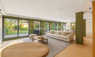 Situé dans le secteur prisé de Saint-James à l'abri des regards, comme une maison ceinturée de verdure, cet appartement distribué sur deux niveaux comporte une entrée donnant sur une double réception avec salon et salle à manger ouverts sur un jardin exposé Sud/Est, une cuisine et des toilettes invités. A l’étage, l’espace nuit comprend deux suites dont l’une parentale, donnant sur balcon et jardin avec chacune un dressing, salles de bains et toilettes, deux autres chambres partageant une salle de bains avec toilettes. Deux caves et deux emplacements de parking complètent ce bien. Calme et luminosité.