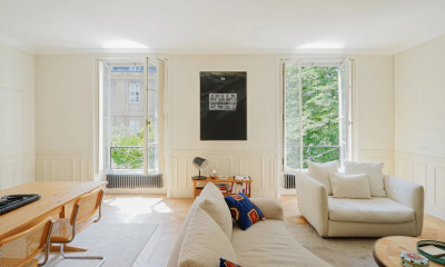 Situé au 4ème étage par escalier d’un bel immeuble ancien, cet appartement de 90,75 m² loi Carrez a bénéficié d’une rénovation complète, alliant avec raffinement le charme de l’ancien et le confort contemporain. Climatisé dans le salon et la chambre principale, ce bien lumineux bénéficie d'une belle hauteur sous plafond et d'une exposition Ouest, baignant les pièces de vie de lumière naturelle tout au long de la journée. L’espace se compose d’un spacieux salon, d’une salle à manger et d’une cuisine ouverte entièrement équipée. Côté nuit, une chambre principale avec rangements, une seconde chambre/ dressing et une salle de douches contemporaine complètent l’ensemble.