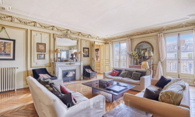 Découvrez ce magnifique appartement de 383,51m² loi Carrez qui surplombe le parc Monceau et l’avenue Hoche, offrant des panoramas dégagés sur le parc, le ciel et l’Arc de Triomphe. Situé au quatrième étage d’un prestigieux immeuble en pierre de taille, cet appartement bénéficie d’un accès par ascenseur et de parties communes somptueuses. Son exposition sud inonde les espaces de lumière naturelle, tandis que ses volumes généreux et son agencement optimal en font un lieu de vie idéal. Un balcon vous permettra de profiter des vues exceptionnelles. Ce bien d’exception se compose d’un spacieux séjour de réception, d’une cuisine dînatoire luxueusement équipée avec salle à manger, d’un bureau, d’une cave à vin (idéale pour les collectionneurs), d’une family room, et de quatre chambres, une salle de bains, une salle de douche, une buanderie. La suite parentale dispose d’un grand dressing et d’une salle de bains/douche/toilettes attenante et trois toilettes indépendantes viennent compléter ce bien. Les finitions raffinées incluent un parquet d’époque, de superbes moulures, des cheminées majestueuses et une hauteur sous plafond de 3,20 m. L’appartement a été rénové avec des matériaux de haute qualité, garantissant un confort optimal et bénéficie de la climatisation. Une grande cave et une place de parking dans l’immeuble ajoutent une valeur considérable à cette offre. Un gardien à demeure assure la sécurité et le bon entretien de l’immeuble. Ce produit rare et exceptionnel est idéalement situé à proximité des écoles publiques, privées et internationales, offrant ainsi un cadre de vie privilégié.