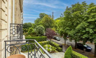PARIS XVI. FLANDRIN. APPARTEMENT FAMILIAL EN DERNIER ÉTAGE AVEC 19,50 M² DE BALCON PLEIN OUEST. VUE TOUR EIFFEL. Au sixième, seul sur le palier, et dernier étage d'un superbe immeuble de style haussmannien en pierre de taille de haut standing dont les parties communes ont été rénovées, avec gardien : Appartement d'une superficie de 142 m² avec une hauteur sous plafond de 3,30 m, bénéficiant de trois balcons filant plein ouest, totalisant 20 m² avec une vue sur la tour Eiffel. Ce bien baigné de soleil et en très bon état comprend : une entrée, une réception de 38 m² climatisée bordée d'un large balcon à la vue dégagée, une salle à manger de 18 m² avec une cuisine ouverte parfaitement équipée, quatre chambres dont une chambre parentale avec salle de bains, une salle de douche, deux toilettes séparées. Nombreux placards et un beau dressing. Très bien exposé (majoritairement ouest), parquet, moulures, cheminées. Une cave et une chambre de service avec kitchenette et douche complètent cette offre. CONSULTANTS IMMOBILIER PARIS