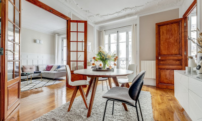 Engel & Völkers vous invite à découvrir ce charmant appartement familial de 81,34m² Carrez, situé au premier étage avec ascenseur, d'un immeuble ancien de 1903. Ce bien rénové il y a 5 ans, a conservé tous les codes de l'ancien, alliant ainsi le charme d'un parquet d'origine, celui des moulures et d'une cheminée fonctionnelle au confort moderne. Cet appartement traversant, au calme, se compose d'une entrée, d'un séjour-salle à manger avec cheminée et d'une cuisine ouverte équipée. Il comporte actuellement, deux chambres avec dressings, une salle d'eau avec fenêtre, incluant une douche à l'italienne, une double vasque et des rangements sur-mesure et des toilettes séparés. Le plan est modulable et permettrait de créer une troisième chambre avec peu de travaux. Une grande cave et une chambre de service d'environ 7m² pouvant servir de bureau ou de pièce de stockage, viennent compléter ce bien de qualité. Professions libérales autorisées Chauffage individuel au gaz Copropriété de 61 lots Charges annuelles moyennes : 3000 euros Procédure en cours : non DPE : D (166) - GES : D (35) Estimation des coûts annuels d'énergie du logement : 1281 euros - 1733 euros Honoraires de transaction à la charge du vendeur Les informations sur les risques auxquels ce bien est exposé sont disponibles sur le site Géorisques: Quartier Batignolles: à proximité immédiate de la rue Lemercier, recherchée pour ses commerces de bouche et ses restaurants, est dans un secteur dont l'attractivité ne cesse de croître. Cette rue offre à la fois, un calme résidentiel et un certain dynamisme; Familles, jeunes actifs et professions libérales y investissent, de plus en plus nombreux. Transports: Métro 13 Brochant, Métro 14 Pont Cardinet, Métro 2 Rome Espaces verts: Parc Martin Luther King et Square des Batignolles