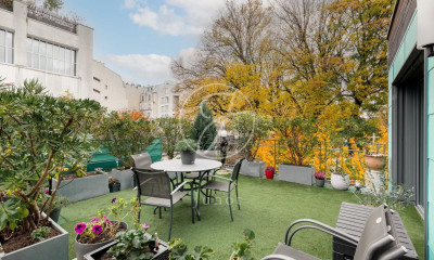 Paris 18 - Passage Lepic Au 5ème étage (ascenseur) d'un bel immeuble ancien entièrement rénové, appartement 4 pièces : entrée, grand séjour traversant, cuisine, 3 chambres avec placards intégrés, salle de bain avec douche et WC, salle d'eau, WC indépendant. Calme, vue dégagée. DPE : C. Digicode, interphone, Cave Visite sur RDV