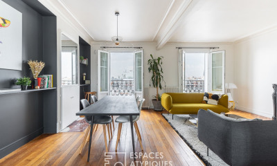 À Paris, dans le XVIIIème arrondissement, à 200 mètres du marché couvert de l'Olive, de sa rue piétonne, de ses commerces de proximité, de ses restaurants de quartier, à 200 mètres de la station de métro « Max Dormoy » (Ligne 12) et à 5 minutes à pied des écoles. Appartement en Duplex de 124m2 (89,79m2 loi Carrez), situé au 5ème et dernier étage, qui vous propose, 2 niveaux: une entrée avec placards de 7,47m2, une spacieuse pièce de vie de 60,64m² (surface au sol) et 27,96m2 (loi Carrez) traversante Est/Ouest avec sa cuisine aménagée et équipée, 4 chambres (18,80m2, 9,80m2, 9,89m2, et 10,36m2), 1 salle de bains avec toilettes, 1 WC séparé avec lave-main, un dégagement, et de nombreux rangements. Vous bénéficierez également d'une cave, de la possibilité d'acquérir en plus une place de parking, de la fibre optique, d'un système de chauffage et d'eau chaude individuel au gaz, de prestations de qualité (parquet massif, poutres, vue très agréable, charme d'un duplex en dernier étage, etc…), et d'un immeuble des années 30 très bien entretenu et sécurisé (double code), en très bon état, puisqu'il a bénéficié en 2020, d'un ravalement complet côté rue et côté cour, ainsi qu'une rénovation des parties communes. Ce bien est dans un bon état général, car en plus d'un entretien régulier, toutes les peintures du bien ont été refaites en 2020, et la chaudière au gaz est de 2024. Cependant, une mise à votre goût de certains espaces pourrait vous être nécessaire. Le secteur recherché et en évolution positive, l'habitabilité, l'agencement, les volumes, le dernier étage, la vue, le charme de l'ancien, et la qualité de certaines prestations, vous seront très largement agréables, bénéfiques et profitables; Bien soumis au statut de la copropriété 7/49 lots. Quote-part du budget prévisionnel de 3982 € / an. Procédure en cours. Pour tout renseignement, contactez Marie BELEC ou par email à (EI RSAC 900645722 Nanterre)