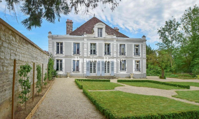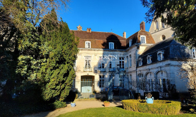 En Bourgogne, au coeur du centre historique d'une ville d'art et d'histoire, un hôtel particulier IMH du 16e s., son jardin et son ancienne étude notariale. La propriété, établie à l'angle de deux rues calmes du centre ancien, se compose d'un hôtel particulier partiellement inscrit MH, d'une ancienne étude notariale et d'un jardin. L'entrée d'honneur est gratifiée d'une imposante grille ouvragée en fer forgé, qui débouche sur la cour d'accueil gravillonnée. Le logis principal, bâti suivant un plan en U, coiffé d'un toit en tuiles plates, présente sa façade principale en brique rouge et pierre calcaire, qui se dévoile en léger retrait. Le corps central est rythmé de hautes baies et de persiennes, tandis qu'une lucarne à fronton cintré, flanquée de volutes décorées de feuilles d'acanthe, rappelle l'héritage ornemental du Grand Siècle. Les garde-corps en fer forgé, les pilastres cannelés, les bandeaux filants et les chaînages harpés ponctuent les façades. Deux pavillons symétriques, coiffés de toits pyramidaux en ardoises, se déploient de part et d'autre. Un second accès s'articule autour d'une porte sécurisée et d'une porte cochère, équipée de vérins électriques, qui dessert la cour intérieure dallée de briques, propice au stationnement de véhicule. Enfin, l'accès au garage s'opère depuis une placette intimiste, qui permet une entrée discrète vers la propriété. La terrasse est prolongée par le jardin.