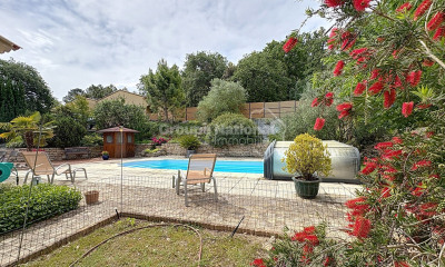 SAINT-RESTITUT - EXCLUSIVITE - Drôme Provençale Visite virtuelle immersive 3D disponible sur notre site internet. Située dans la campagne de Saint Restitut, au bout d'un petit quartier résidentiel prisé au calme, venez découvrir cette villa confortable et lumineuse d'environ 270 m². Elle offre un vaste salon/séjour de 75 m² et une cuisine équipée/salle à manger de 28 m², et la partie nuit se compose de cinq chambres dont trois de plain-pied, un dressing, une salle d'eau, une salle de bains et deux WC. Les pièces à vivre donnent accès à une immense terrasse et à l'espace piscine de 10 x 5m sécurisée. Des dépendances dont quatre garages, une cave, un abri, une terrasse viennent compléter l'ensemble. Le tout est implanté au coeur de 2191 m² de terrain clos et arboré de chênes, d'oliviers avec une jolie vue sur les vignes alentours. Cette villa est à vendre à l'agence Boschi Immobilier de Grignan 26230. -- REZ DE CHAUSSEE -- Entrée 9 m² avec vestiaire Hall avec placard 6,50 m² Cuisine équipée 11,50 m² ouverte sur salle à manger de 17,50 m² et accès terrasse couverte Salon d'environ 75 m² avec poêle à granulés et accès terrasse Dégagements 15 m², Salle de bains 10 m² avec baignoire d'angle Chambre 1 de 21,50 m² Wc indépendant 1,80 m² Salle d'eau 5,60 m² Dressing 5 m² Chambre 2 de 12,20 m² Chambre 3 de 23 m² avec dégagement 3,50 m² et wc fermé 1,55 m² -- ETAGE -- Palier 3 m² Chambre 4 de 15 m² Chambre 5 de 21 m² avec grand placard Dégagement/placard 3 m² avec accès aux combles isolés (60 m² au sol) -- DEPENDANCES -- Buanderie 7,50 m² avec accès extérieur Cellier 10 m² avec cave en sous-sol de 22 m² Garage double ouvert 35 m² Garage double fermé 36 m² Abri terrasse piscine 18 m² -- DIVERS -- Piscine 10 x 5m carrelée (au sel) sécurisée avec volet roulant solaire Eau de ville + eau du Rhône (borne privée) avec arrosage automatique Toiture entièrement refaite en 2022 Chauffage via PAC air/eau, plancher chauffant/rafraîchissant + climatisations réversibles Huisseries double vitrage PVC ou Bois double vitrage et baies aluminium Maison reliée au tout à l'égout - Vide sanitaire Honoraires à la charge du vendeur. Classe énergie C, Classe climat A Montant moyen estimé des dépenses annuelles d'énergie pour un usage standard, établi à partir des prix de l'énergie de l'année 2021 : entre 1900.00 et 2650.00 euros. Les informations sur les risques auxquels ce bien est exposé sont disponibles sur le site Géorisques : georisques.gouv.fr.