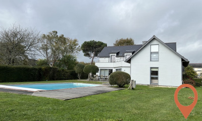 Edifiée en position dominante, au coeur de l'un des quartiers les plus résidentiels et recherchés de la commune, cette belle maison de 170 m², bâtie en 2000 sur un terrain paysager de 2 073 m², incarne un bel équilibre entre confort familial, vue exceptionnelle et qualité de vie au quotidien. Dès l'entrée, le regard se laisse porter vers l'horizon. Face à vous, le golf de Cornouaille déploie ses nuances de vert, et plus loin la mer se dessine en toile de fond. Un spectacle dont on ne se lasse jamais. La maison s'ouvre sur un vaste salon-séjour de 55 m², baigné de lumière, où la cheminée réchauffe les soirées d'hiver et où chaque baie vitrée encadre la nature environnante. La cuisine aménagée prolonge naturellement cet espace de vie tourné vers l'extérieur. La terrasse plein sud, profite d'un ensoleillement optimal et de couchers de soleil spectaculaires. La maison dispose de cinq chambres, dont une au rez de chaussée, de deux salles de bains (avec possibilité d'une troisième) ainsi que d'une mezzanine qui peut aisément se transformer en bureau ou en espace détente. Un garage et un cellier complètent les prestations. A seulement quelques minutes des commodités et du port de plaisance, cette propriété conjugue quiétude résidentielle et proximité des activités du bord de mer. Une adresse recherchée pour celles et ceux qui rêvent de vivre au rythme de la lumière et des saisons dans un cadre aussi paisible qu'élégant. Ce bien est à découvrir avec l'agence ESPACE IMMOBILIER, spécialiste des belles maisons et des beaux appartements en Finistère Sud. Les informations sur les risques auxquels ce bien est exposé sont disponibles sur le site Géorisques : [] (). (3.78 % d'honoraires TTC à la charge de l'acquéreur.)