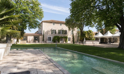 Superbes éléments architecturaux, Restauration de grande qualité Salon/séjour ouvert sur cour et piscine, grande cuisine avec large cellier 4 chambres, 4 salles de bains, grenier aménageable Situation dans un authentique village à 18 kms d’Uzès et 20 min de Nîmes