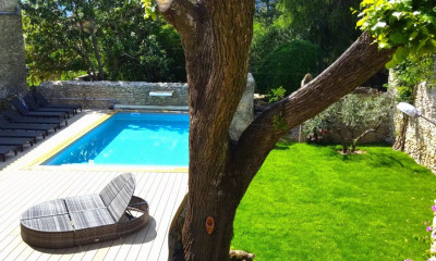 Dans le piémont cévenol, un ancien domaine agricole de 7 ha, avec mas du 17e s, maison de maître, communs et chai du 19e s. . À peu de distance de Quissac, le domaine de 7 ha s'étend au levant et au couchant, de part et d'autre de quatre bâtiments groupés en un hameau privé : un chai, une vaste ferme dite « le grand mas », un pigeonnier et la demeure vigneronne. L'accès à la propriété s'opère par la route qui dessert l'ancienne cour agricole. La maison de maître, qui se rejoint à travers la campagne, est située à l'opposé de cette départementale, face aux vignes et aux bois. Témoignant fortement, par l'articulation de ses éléments, d'une activité viticole passée, la propriété a visiblement connu plusieurs destinées. Une activité de sériciculture artisanale a pu précéder la viticulture, avant que des démembrements fonciers n'y mettent un frein. Et d'autres usages leur ont fait suite - ainsi l'ancien chai a-t-il été transformé aujourd'hui en ateliers et salles de réception. Sur les contreforts des Cévennes, l'édification des bâtiments, souvent austères, obéit aux seules lois que le labeur et l'habitat rural ont pu dicter au fil du temps. Les époques de construction différent d'un élément à l'autre et oscillent essentiellement entre le début et la fin du 19 € s., des interventions architecturales ayant en sus visé à unifier l'ensemble aux 20 € et 21 € s. La maison de maître, bâtie à la fin du 19 € s., a adopté assez curieusement le modèle des magnaneries locales, sobres et largement ouvertes au sud. Le chai, de même époque, a été réaménagé après un effondrement de la toiture de la partie centrale. Le « grand mas », qui fut sans doute un logis rural avec ses quelques salles basses voûtées, fournit un évident exemple de construction réalisée sur des vestiges antérieurs, sans doute de la fin du 17 € s. ou du début du 18 € s. Le pigeonnier, en briquettes rouges, édifié sur le toit de dépendances à usage de logis, date quant à lui du début du 20 € s. et agrège autour de lui une série de petites maisons mitoyennes qui servent actuellement d'habitations locatives. L'ensemble, dont l'attrait opère d'autant plus que l'environnement naturel a été préservé de divers dommages, offre un témoignage intéressant du quotidien de la viticulture cévenole. Sa réhabilitation contemporaine, non achevée par endroits, l'a gratifié d'une homogénéité certaine.
