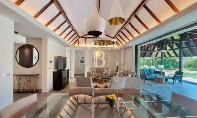 Cette magnifique villa de quatre chambres et deux étages est située dans l'enclave exclusive Ocean River Villas, au sein d'Azuri Ocean & Golf Village à Haute Rive. Surplombant le parcours de golf, entourée de jardins luxuriants et offrant une vue sur la verdure et les montagnes, la propriété offre un style de vie exceptionnel dans l'un des lotissements résidentiels les plus prisés de Maurice. Le rez-de-chaussée comprend un spacieux espace de vie et de salle à manger à aire ouverte qui s'étend sans interruption sur le jardin, la terrasse extérieure et la piscine privée. De grandes fenêtres et des portes coulissantes laissent entrer la lumière naturelle dans l'espace tout en encadrant la vue sur la piscine et le paysage tropical. La villa comprend une cuisine designer entièrement équipée, une cuisine arrière pratique, une buanderie et des toilettes pour les invités. Ce niveau propose également une suite parentale avec vue sur la piscine et le jardin, ainsi qu'une chambre supplémentaire avec salle de bain. L'espace extérieur est idéal pour la détente et le divertissement, avec une piscine privée entourée d'une verdure luxuriante et un kiosque accueillant avec un espace salon. Le jardin offre une intimité totale et une connexion visuelle directe avec le parcours de golf. Le rez-de-chaussée comprend une seconde cuisine entièrement équipée, rendant le niveau supérieur indépendant si nécessaire. Elle comprend également une suite parentale avec dressings, une chambre attenante supplémentaire et un élégant salon et salle à manger qui s'ouvre sur une grande terrasse. Depuis cette terrasse, les habitants profitent d'une vue panoramique et ininterrompue sur le parcours de golf et les paysages environnants. La villa est équipée d'un générateur électrique privé, d'un système de vidéosurveillance complet et d'un accès sécurisé. Des finitions modernes, des matériaux de haute qualité et un intérieur entièrement meublé et équipé garantissent confort, commodité et un style de vie contemporain raffiné.